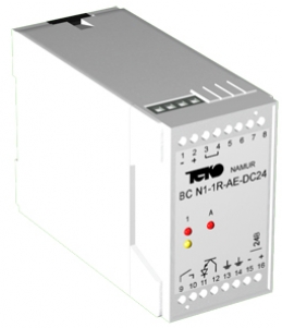 | BC N1-1E-AR-AC110Блок сопряжения BC N1-1E-AR-AC110 предназначен для питания индуктивных бесконтактных особовзрывобезопасных датчиков и преобразования слаботочного аналогового сигнала, поступающего от датчика, в сигнал оптрона для управления исполнительными устройствами. Блок сопряжения обеспечивает: 1. Гальваническую развязку датчика с исполнительным устройством. 2. Преобразование слаботочного сигнала датчика в выходной сигнал оптрона для управления исполнительным устройством с одновременной индикацией замкнутого состояния выхода. 3. Инверсию состояния выхода канала установкой перемычки. 4. Контроль исправности датчика и линии связи с датчиком (КЗ, обрыв провода). 5. Световую индикацию и размыкание выходов рабочего канала при обнаружении в ней неисправности. 6. Формирование сигнала “АВАРИЯ” и размыкание контактов аварийного канала при неисправности в рабочем канале.