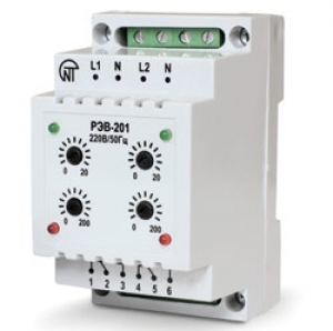 | Двухканальное реле времени РЭВ-201Реле времени электронное двухканальное с задержкой на включение РЭВ-201 предназначено для коммутации электрических цепей переменного тока 220 В/50 Гц и постоянного тока 24-100 В с регулируемой задержкой времени включения от 0 до 220 с. Устройство состоит из двух независимых реле времени (двух каналов). Отсчет выдержки времени каждого канала начинается с момента подачи питания на соответствующий канал. Соответствующая схемы подключения реле РЭВ-201 позволяет реализовать: