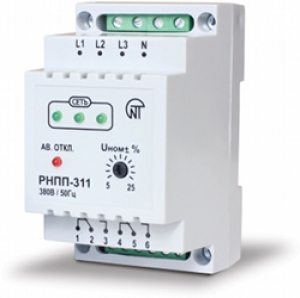 | Трехфазное реле напряжения и контроля фаз РНПП-311Реле напряжения РНПП-311 предназначено для защиты трехфазных потребителей от основных видов аварии в электрической сети, таких как: