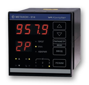 микропроцессорный регулятор серии МЕТАКОН-613, выход - транзисторы с открытым коллектором, выполняет функции ПИД-регулирования, рассчитан на работу с унифицированным входным токовым сигналом 0...20 (4...20) мА, установлена программно-аппаратная поддержка интерфейса RS-485.