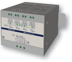 Многоканальный блок питания PSM-4/3-24 (4 канала) преобразует сетевое переменное напряжение в диапазоне значений 187-242 В в стабилизированное постоянное напряжение 24 В с выходным током нагрузки до 125 мА на каждый канал. Диапазон рабочих температур блока питания 0...+55 °С. Монтаж на DIN-рельс.