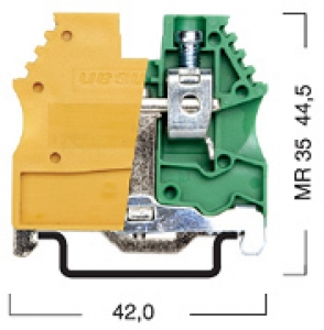 Надежный механический и электрический контакт с монтажной рейкой обеспечивается простым защелкиванием и затягиванием. Малое переходное сопротивление, защита от корозии и в местах присоединения проводников, желто-зеленый цвет корпуса клеммы, возможность нанесения маркировки.